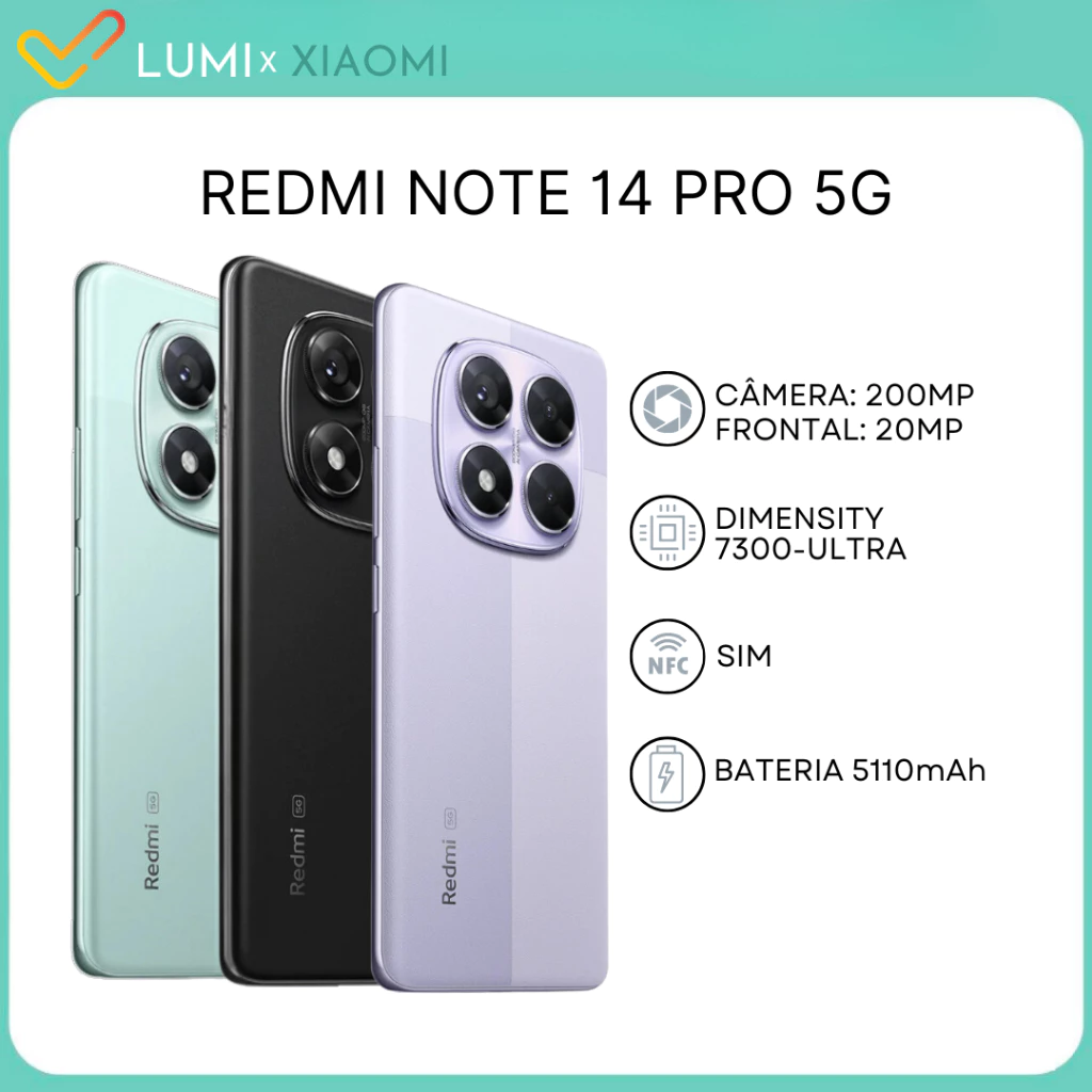 Xiaomi Redmi Note 14 Pro 5G 256GB/8GB RAM, 512GB/12GB RAM Câmera 200MP, MediaTek Dimensity 7300-Ultra, VERSÃO GLOBAL O Xiaomi Redmi